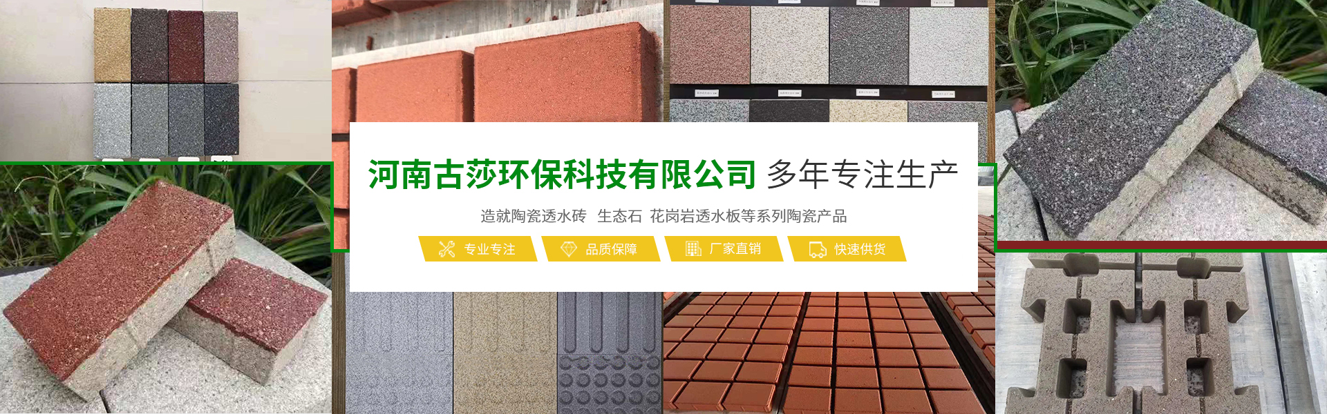 河南古莎環保科技有限公司總坐落于交通樞紐城市鄭州,是一家具備研發、生產、銷售能力為一體的綜合性現代化陶瓷企業。本公司專業生產經營生態陶瓷透水磚、生態鋪石、PC仿石材透水磚、PC仿石材景墻磚、普通透水磚、燒結磚等系列產品,完善的研發團隊,完善的生產流水線設備,打造完善的陶瓷企業。古莎環保科技現代化陶瓷企業是美化城市,改善生活環境質量的生態環保產品,可廣泛應用于公共建筑廣場、城市道路、公園、藝術景觀、廊道、房地產、別墅住宅小區、地鐵口、車站、高速公路服務區等。古莎環保科技在原有陶瓷企業基礎上,另拓展園林綠化、市政施工、瀝青包工包料施工、公路維修等業務板塊,專業培訓了一些園林綠化、市政施工技術人員,并有多年的施工養護經驗以及建筑工程經驗。保證市政工程施工質量以及園林綠化后期養護規范化、專業化。古莎環保科技所遵循的企業與品牌發展思路,是奠定在品質與產品應用之上。環保理念由我們共同倡導,理性思考,以推進步,感性溝通,以共建優越。古莎環保科技與大家真誠合作,攜手共進,為助力海綿城市建設,建筑高品質的綠色城市生活貢獻一份力量!
